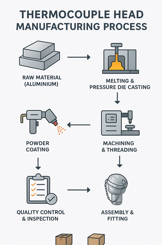 Our fully in-house production setup ensures consistent quality, faster delivery, and the highest reliability in every thermocouple head we produce.